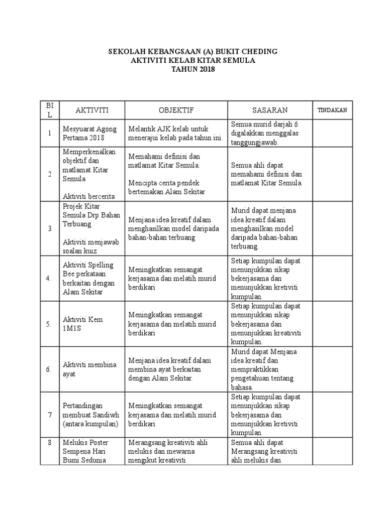 Lagi Lembaran menarik aktiviti Alam Sekitar Bahasa Melayu. 11 Pelajar dapat menerapkan pendidikan Kenegaraan dalam pergaulan seharian 12 Pelajar dapat. Rancangan Aktiviti Tahunan Kelab Pencinta Alam.